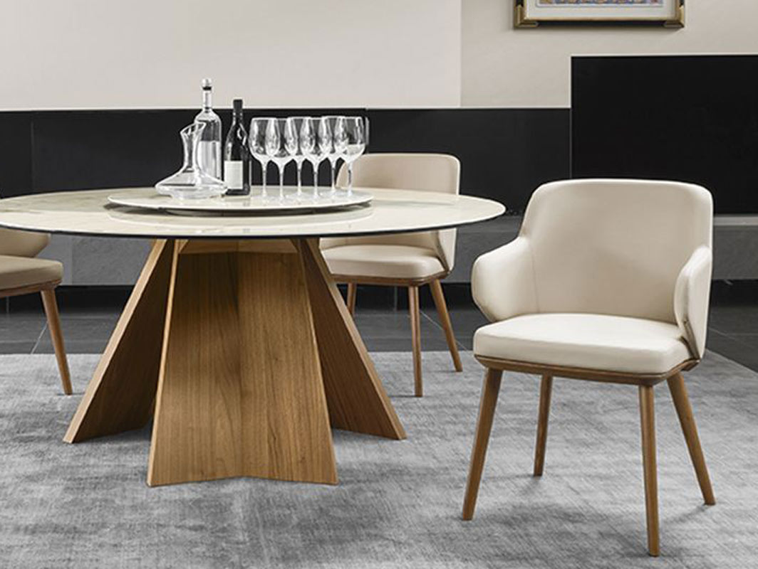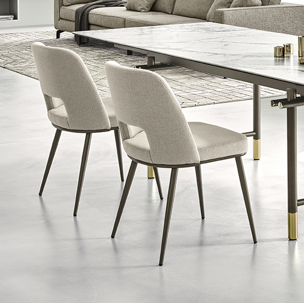 Αυτό το εφέ προέρχεται από το περίβλημα του επενδεδυμένου καθίσματος από καμπυλωτό ξύλο, το μαλακό κάθισμα που υποστηρίζεται από ελαστικούς ιμάντες και μια εκλεπτυσμένη μεταλλική/ξύλινη βάση 4 ποδιών. -