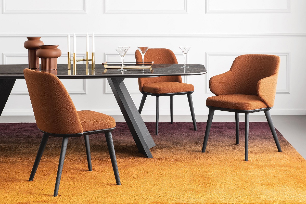 Η επικαλυμμένη καρέκλα FOYER μεταφέρει μια αίσθηση άνεσης και χαλάρωσης στον θεατή που παραδίδεται στο δέλεαρ του.