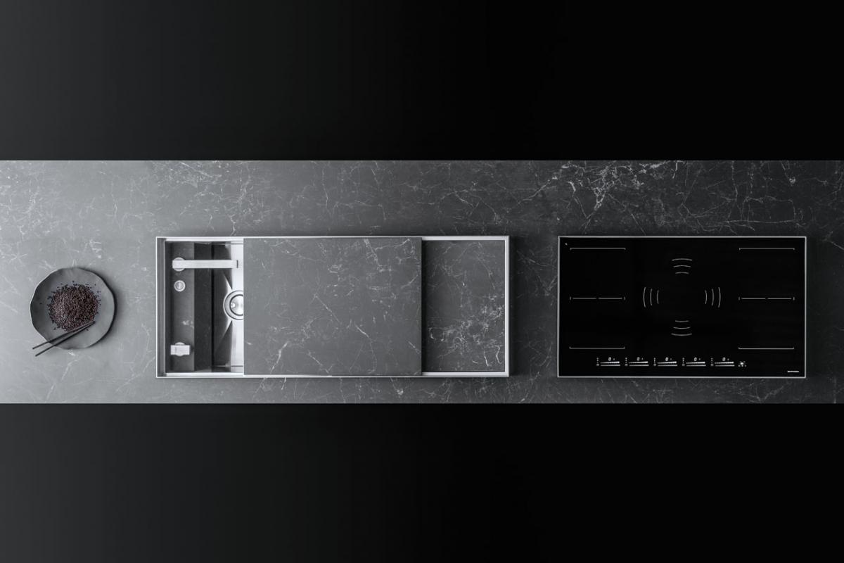Οι Mizu και Kasai, «νερό» και «φωτιά» στα Ιαπωνικά, δίνουν ένα άγγιγμα ιταλικής δημιουργικότητας για να γίνουν νεροχύτες και εστίες, δύο στοιχεία μιας συλλογής εμπνευσμένα από αυστηρούς κανόνες και καθαρές γραμμές.