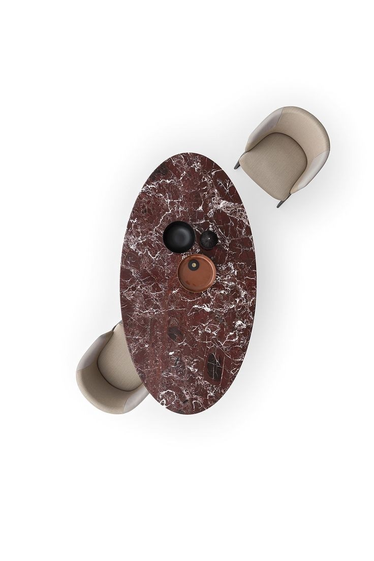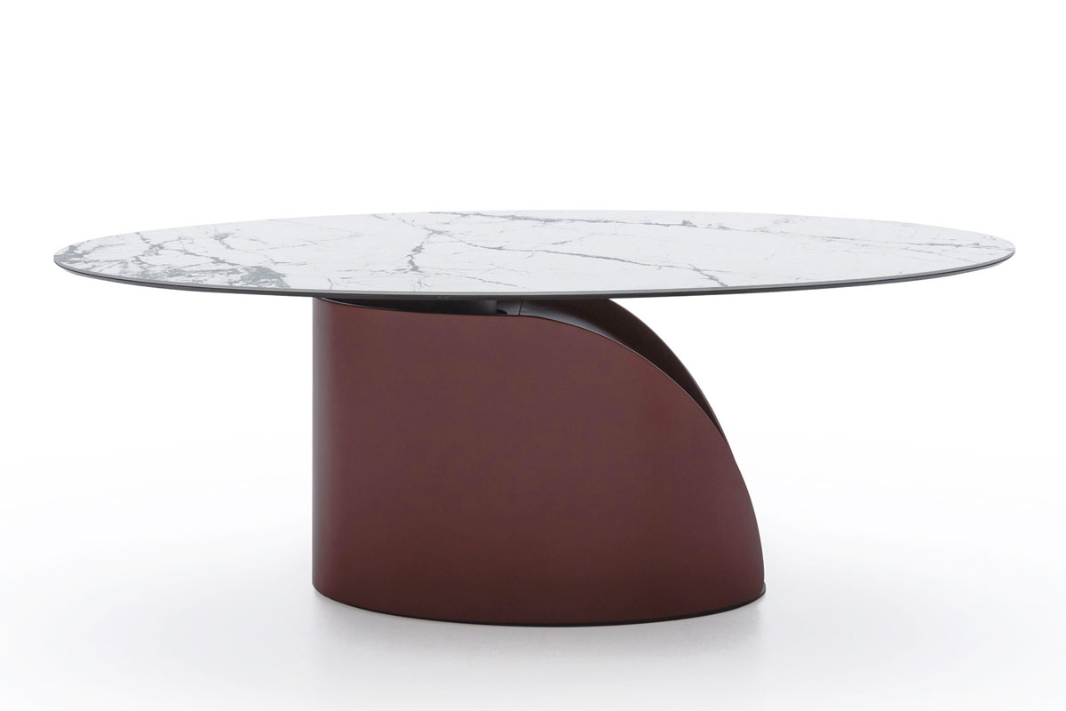 Central Park is both a table and a sculpture in which colours, lines, curves and slim panels combine to harmonise with the many original finishes available for the top. The collection of Central park seats, on the other hand, is available in three different versions and imitates the style of vintage sports car seats