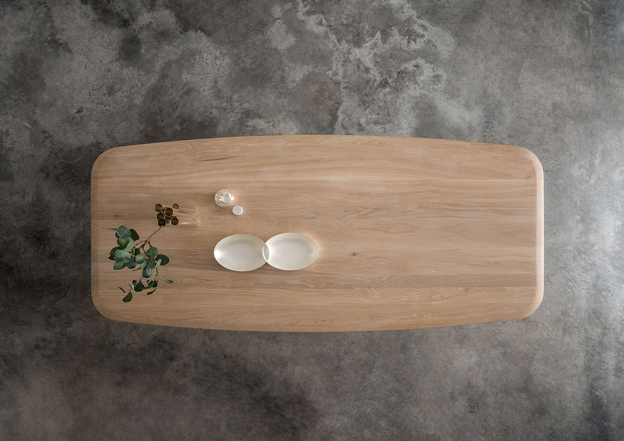 Copenhagen top in “materico” oak stands out for its 3.5 cm thickness and for the soap-shape edge combined to a rounded shape which make it unique. For this kind of manufacturing, every top is different and exclusive.