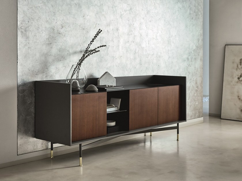Dialogo is the name of a range of cabinets, sideboards and TV cabinets featuring a slim carcass supported by a metal frame that sets off its functional volume.