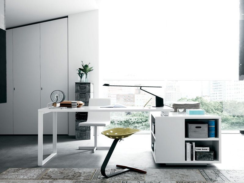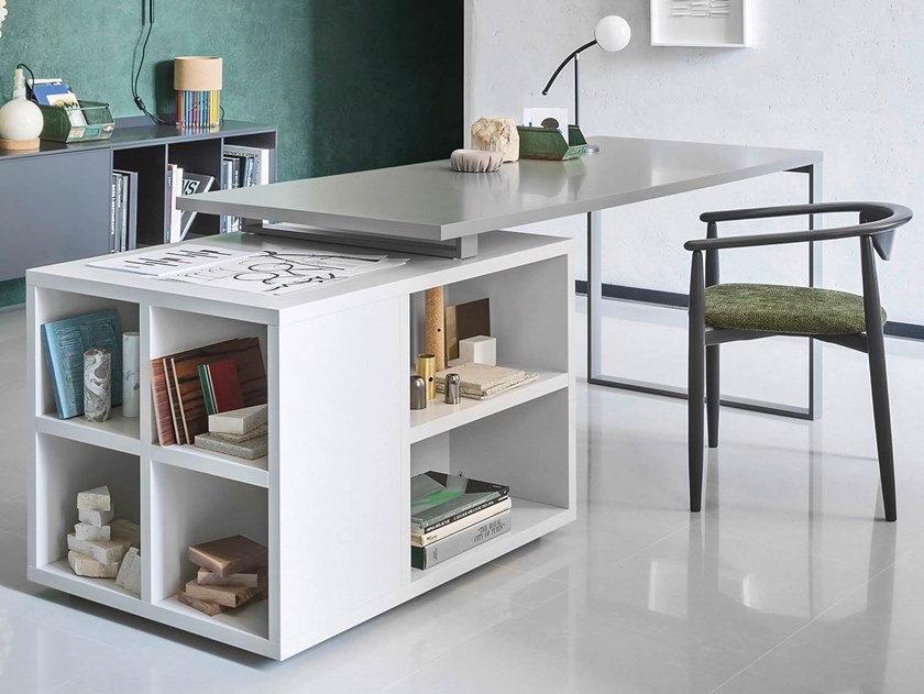 Isola is a desk comprising a low unit that supports the desk top while also doubling as a bookcase. Available in all matt lacquered, eco-wood and textured finishes.