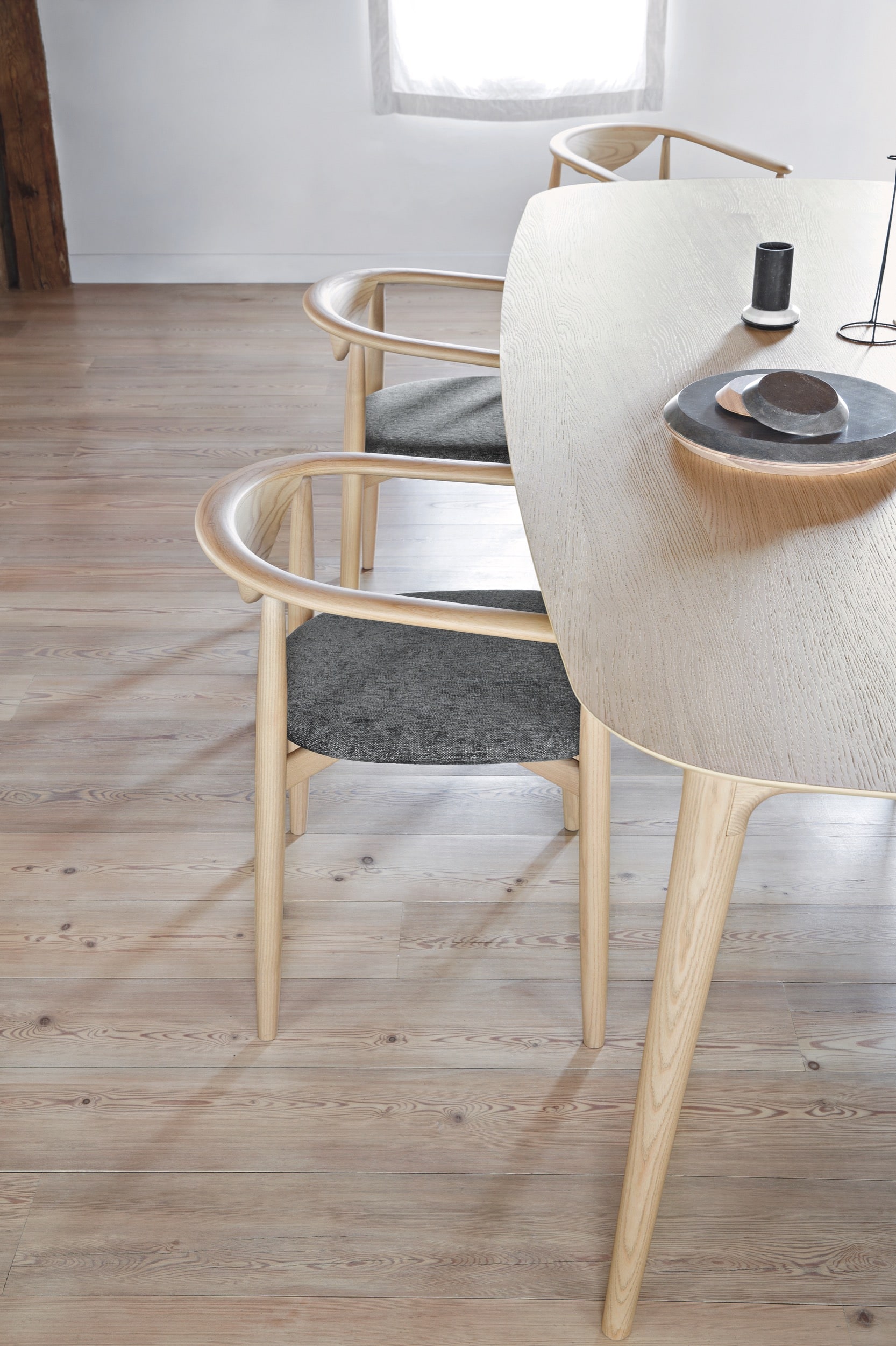 Developed by creative duo Zanellato/Bortotto, Rose is a wooden chair with armrests that sits perfectly in the dining room. Each wooden element is finished by hand and the seat is upholstered in fabric or given a traditional straw finish.