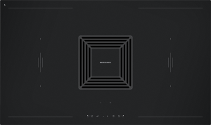 4 mm glass ceramic Touch Control 83×47.5 cm cut out flush: see technical sheet INDUCTION functions: Bridge, Booster, cooking end timer 1-99’, power management safety devices: electronic child safety lock, residual heat indicator, overflow alarm, safety switch-off minimum pan diameter: ø 120 mm adjustable power levels: 2.8-3.5 to 7.4 kW maximum absorbed power: 7.4 kW HOOD speeds: 3 + intensive speed rated air-flow: 800 m³/h pressure: 461 Pa noise level: 41-68 Lw (dBA) filter: AISI 304 stainless steel energy rating: A maximum absorbed power: 0. 124 kW optional filtering extraction minimum base height extracting configuration: 100 mm filtering configuration: 60 mm stainless steel extensible ducts depth: min 240 – max 320 height: min 700 – max 815 stainless steel motor cover duct exit: ø 150 mm Induction zones power: rear left: 2.1-3 kW (*) front left: 1.6-1.85 kW (*) rear right: 2.1-3 kW (*) front right: 1.6-1.85 kW (*) (*) with Booster function